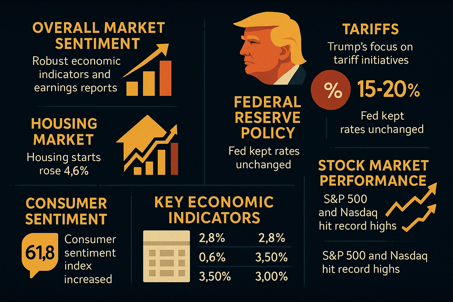 - Federal Reserve Policy: The Federal Reserve kept the short-term federal funds target rate at 4.25% to 4.50%. While President Trump urged the Fed to cut rates, Fed Chair Jerome Powell remained cautious about potential inflation threats from the administration's possible tariff increases.