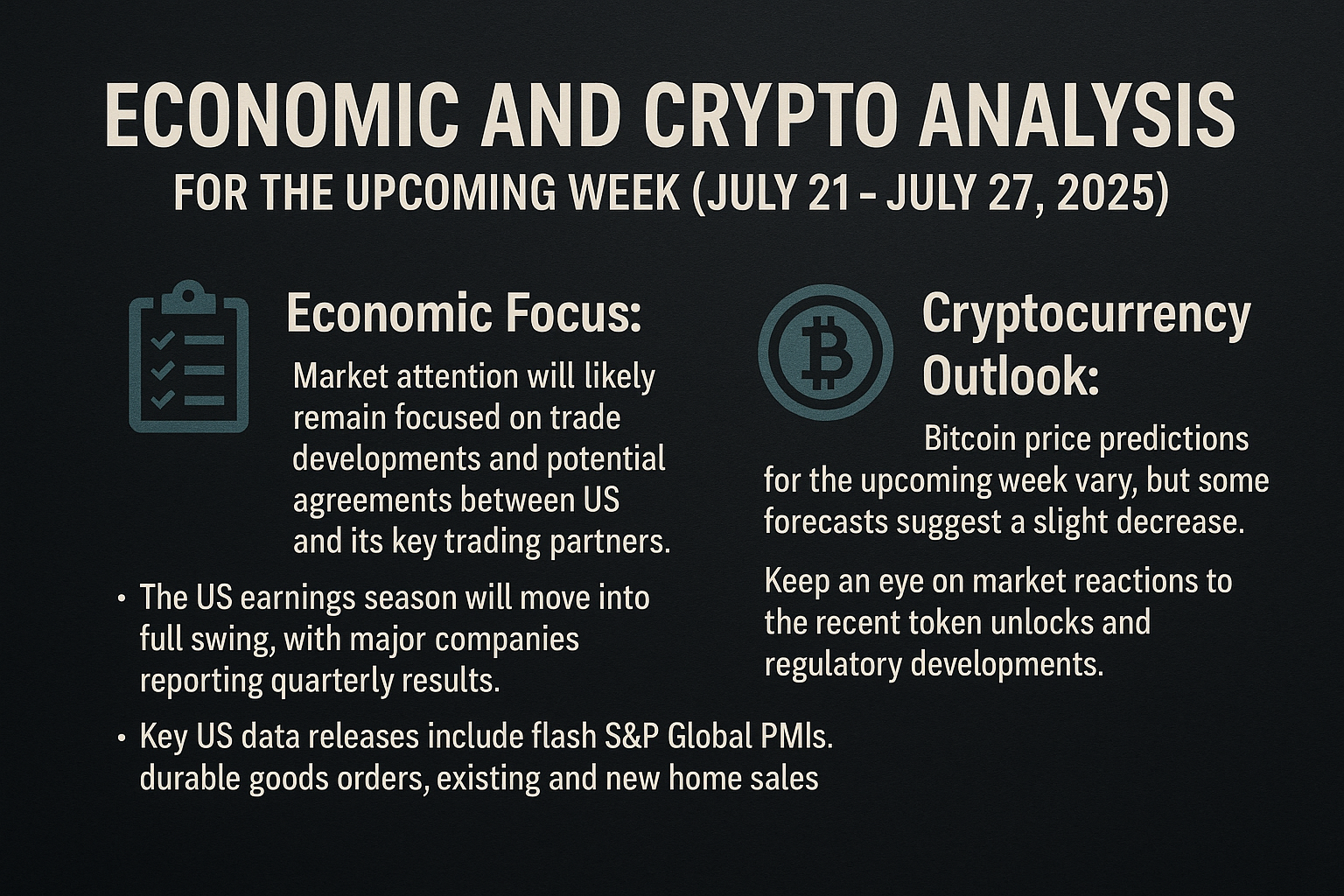 Economic and Crypto Analysis for the Upcoming Week (July 21 - July 27, 2025)